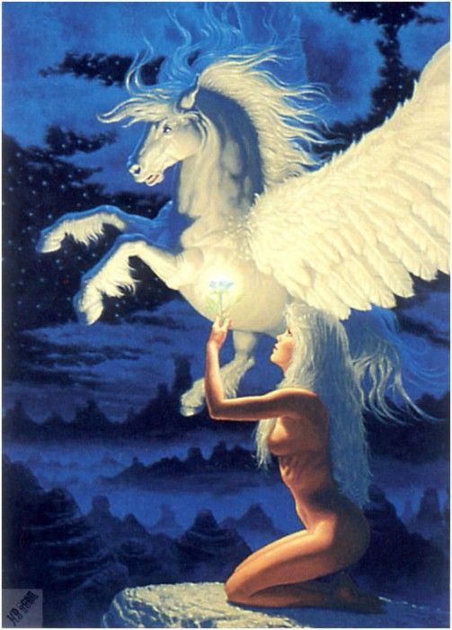 living thing. ![]() ![]() The Sun had cast its shadow and when the Moon was born ![]() ![]() Lunar and Eve were its soul spirits. They remained with the Moon but sent their emissaries, Chandelle and Star forth. They claimed me, Aureole, as their special province and hence, all the faeries born of these spirits continued to be forever bound to and enchanted by the Moon, their goddess. They, their faeries, the stars and the Moon all entwined in this great love affair with the night. Henceforth, Faeries forever have wished on stars, loved under the moon and reveled in the night. The Night was their time and their great dancing place, forever overseen by the eternal Moon and it's spirits, Eve and Lunar. ![]() ![]() Chandelle, "The Moon's Candle" and Star, "The Moon's Eye" had done well. Aureole was created to reflect the Moon's wonderment and enchantment and they too were enchanters and enchanted. ` The Moons soft silvery moonbeams brought warmth and vision to the dark of night. The moon did not sleep though many slept beneath its watchful eye. ![]() ![]() Twilight and Antiquity remained the guardians of the meridian line between Times. ![]() Lilu and Lucid were the faeries who later claimed a like position in "The Faerie Veil" that realm, that fine line, between fantasy and madness. Distance and Speed were the emissaries of the time line and later formed Mercury, ![]() ![]() Painting of Unicorn by Sanne Vankalken and Pegasus by Greg Hilderbrandt The winged and horned one's home, eternal flight it's metaphor. ![]() It was the Spirits who brought the Faeries to the World. And they in turn moved throughout the Universe and later traveled among the humans who followed and all the many creatures who inhabited these many worlds. They came before all creatures and were in the beginning all ethereal, light and transparent, veils of beings. ![]() Their magic brought many other beings to the reality, their other world to play in and with and they romped freely there whenever they chose. Next on to Orbit Page Back to Universe Page The music you are listening to is Michael Yee's Fleeing the City//The Chase" Note: the audio tag is not supported in Internet Explorer 8 and earlier versions. "The Quest for Aureole" by LaMythica, 2000-2020©Linda A. Copp All rights Reserved World Wide. 2000, 2001-2020©ladylamythica, Linda A. Copp |