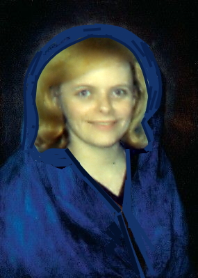 Into a Hooded cloak of onyx black she brushes back her golden locks